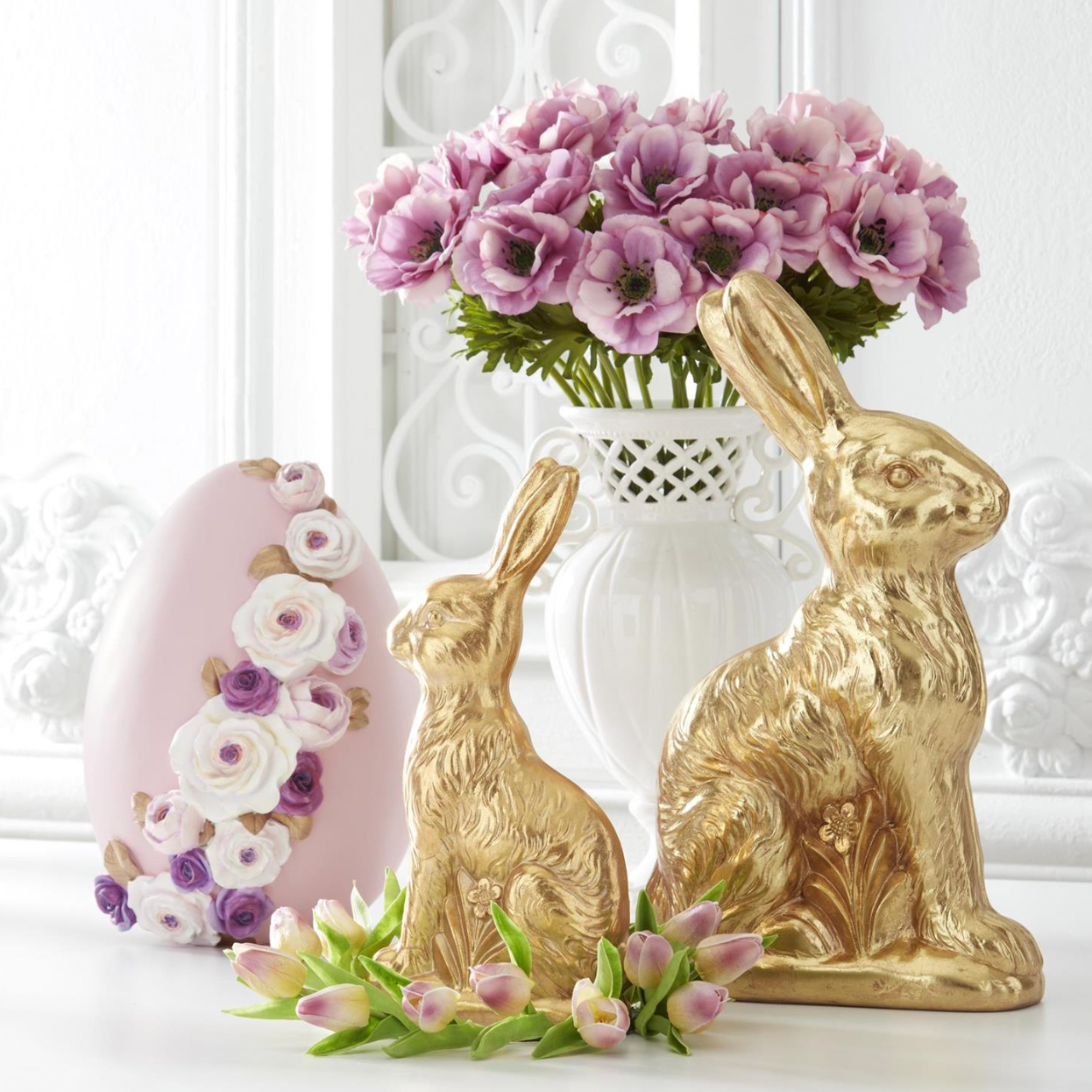 3 Assorted 6.25 Inch Royal Gold Resin Easter Bunny Egg Cloche Topiaries