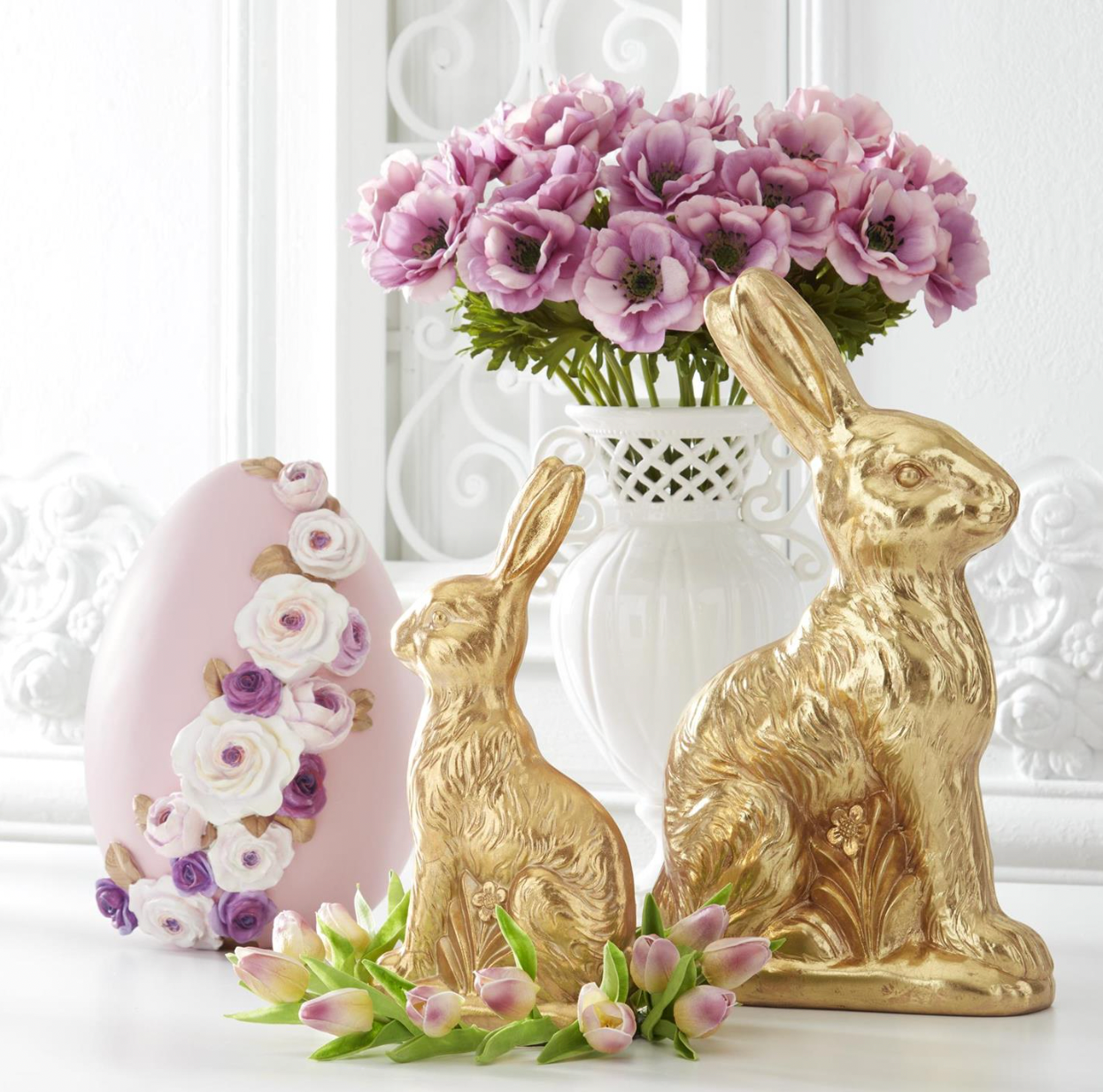 Meet your Easter showstopper—a charming 14" resin bunny that gleams with luxe gold foil accents. Handcrafted with premium resin, this whimsical hop-along brings instant sparkle and personality to shelves, mantels, or gift tables. Whether you're a devoted Easter collector or simply love a touch of gilded charm, this bunny delivers seasonal cheer with serious style.