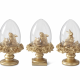 3 Assorted 6.25 Inch Royal Gold Resin Easter Bunny Egg Cloche Topiaries