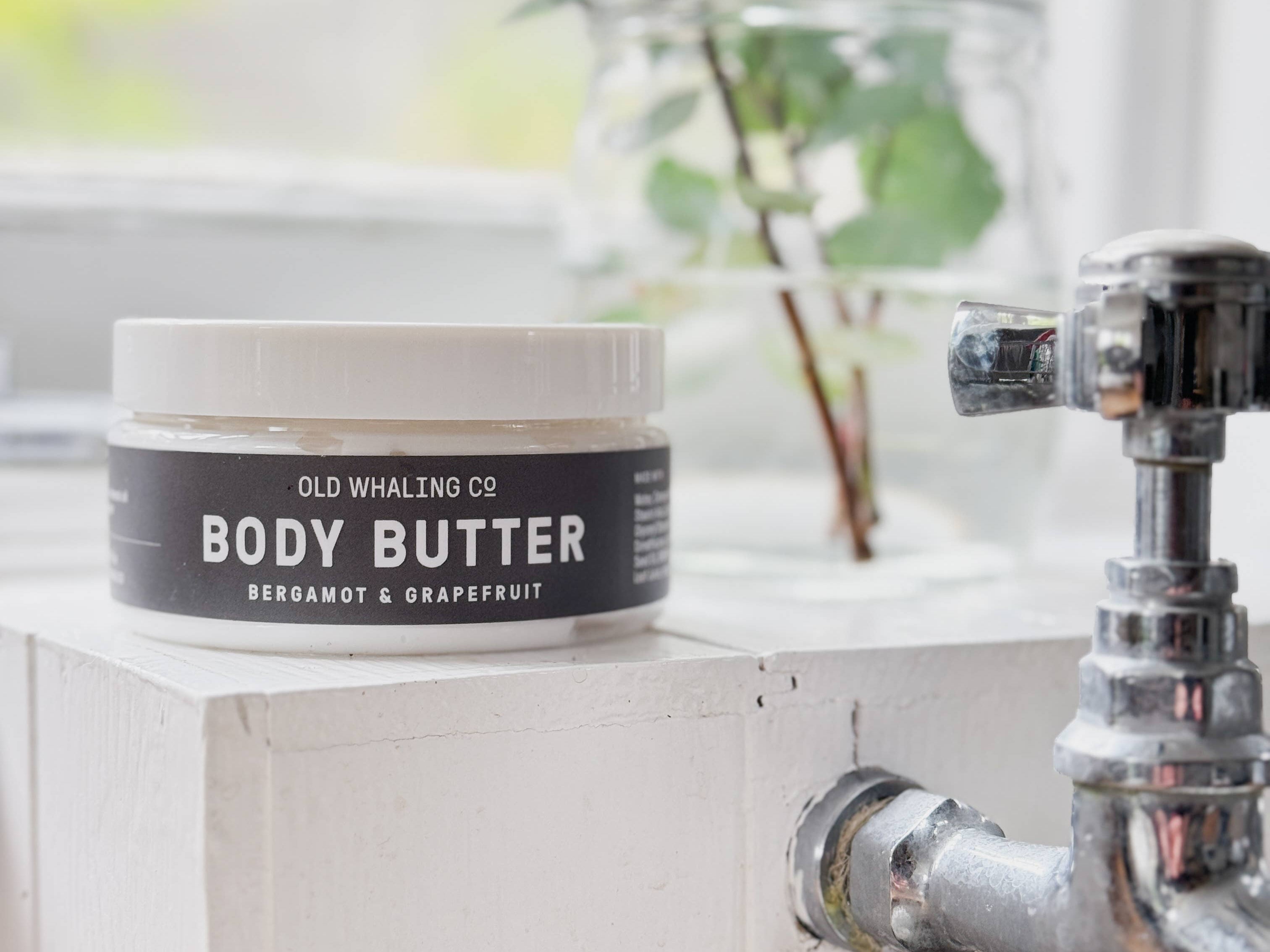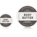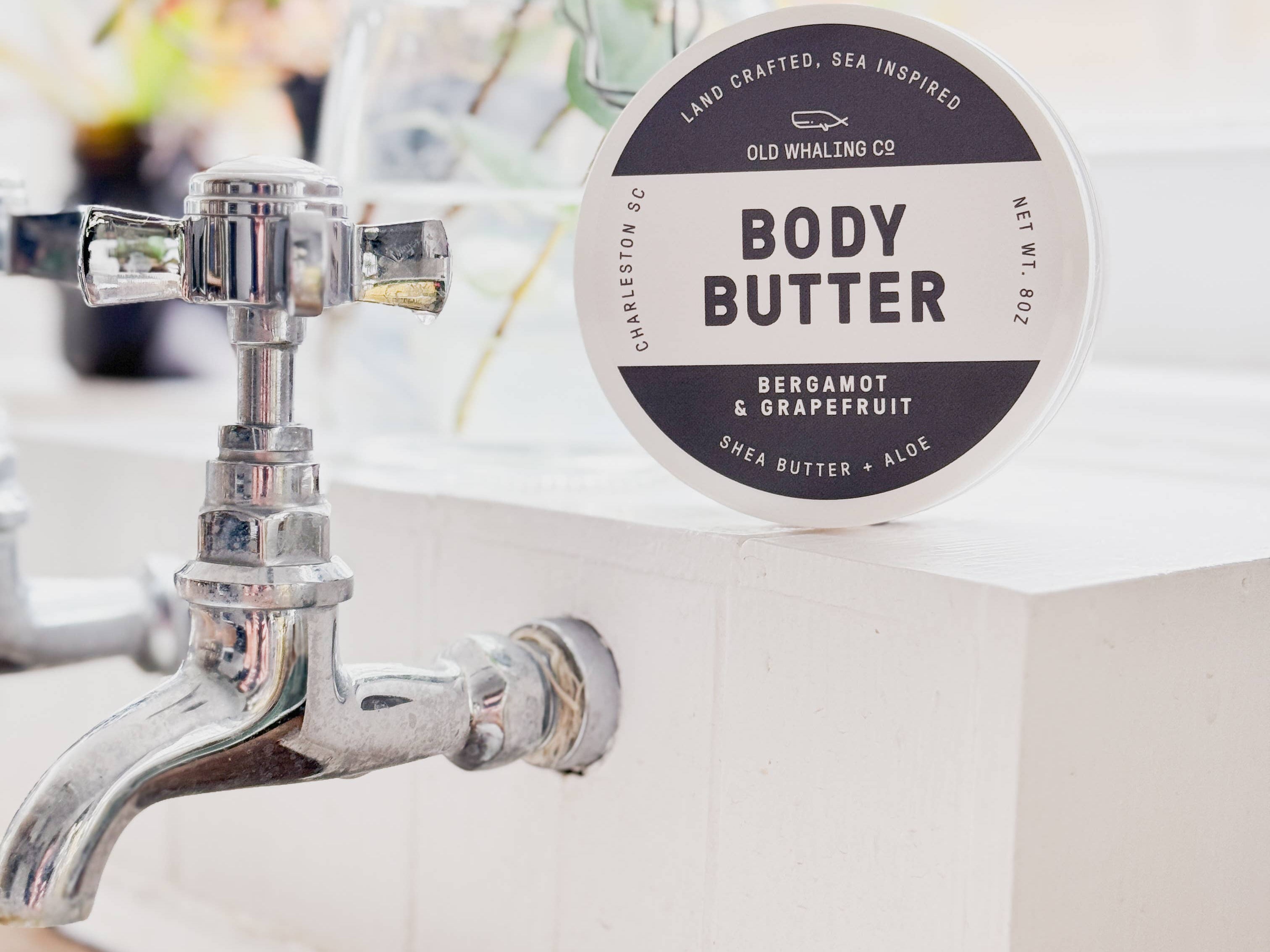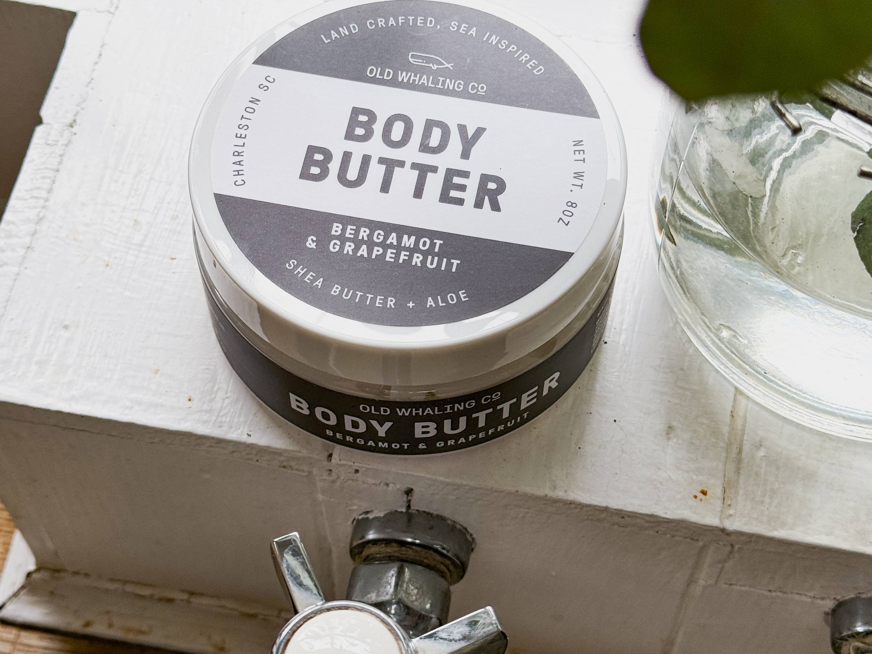 A bright, crisp, citrus blend of Italian bergamot and white grapefruit. Bergamot & Grapefruit is a popular choice for fans of fruity or citrus scents. A bolder fragrance, made with an essential oil and fragrance oil blend. Underneath the top notes of refreshing grapefruit and bergamot, this scent includes hints of cedarwood and musk, giving a slight earthy base to this bright blend. Top: Fresh Bergamot, White Grapefruit, Rhubarb, Pineapple Base: Cedarwood, Musk, Orange Blossom, Jasmine Our body butter is a perfect moisturizer for after shower, shaving, sun, or as needed! It is lightweight and soaks in quickly. Our star ingredients of shea butter, organic sunflower oil and organic aloe vera is nourishing and great for all types of skin. Our body butter is thicker than traditional lotion and extra moisturizing! This 8oz body butter jar is perfect for bathrooms and bedside tables! NO: mineral oil, parabens, sulfates, phthalates or color.