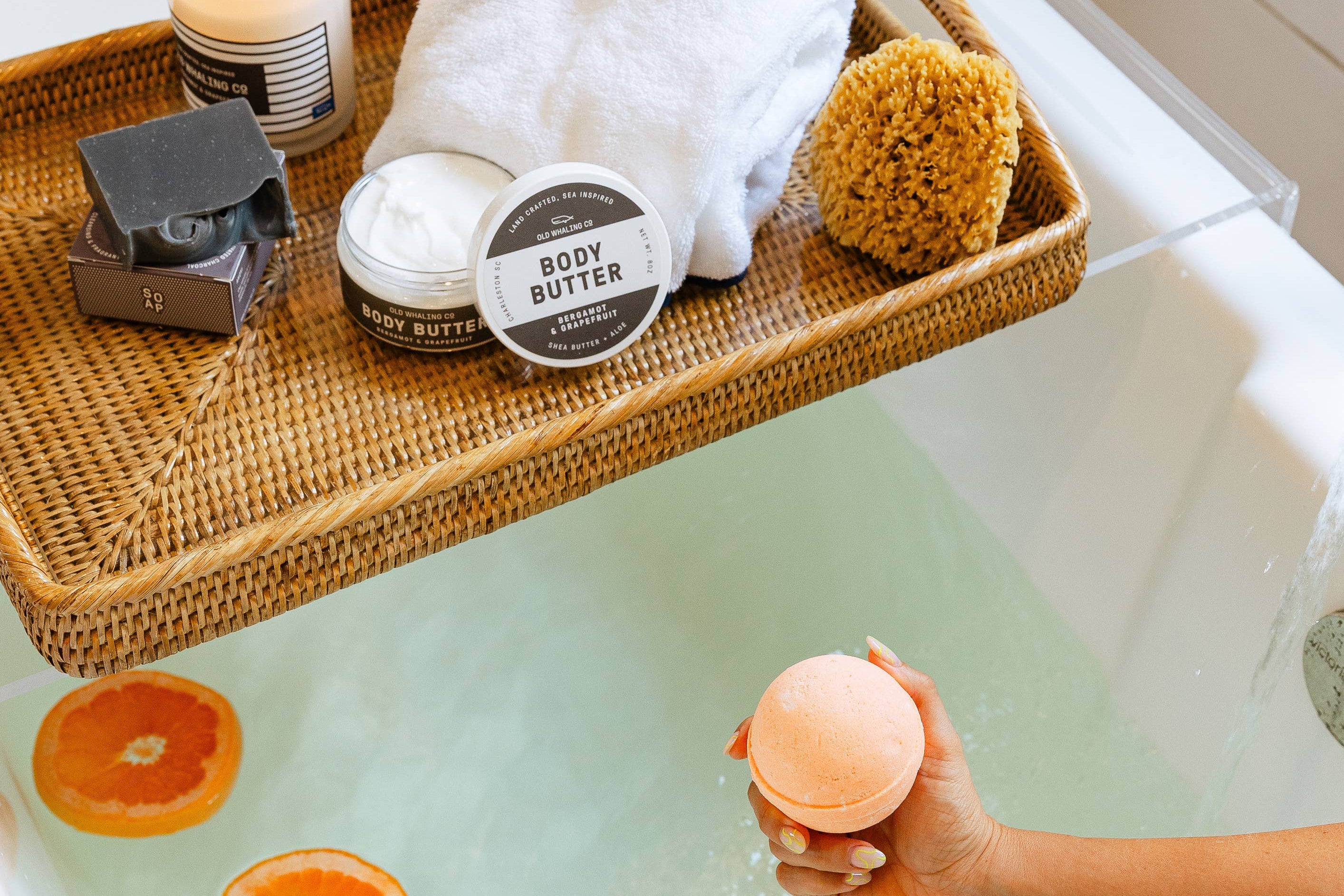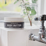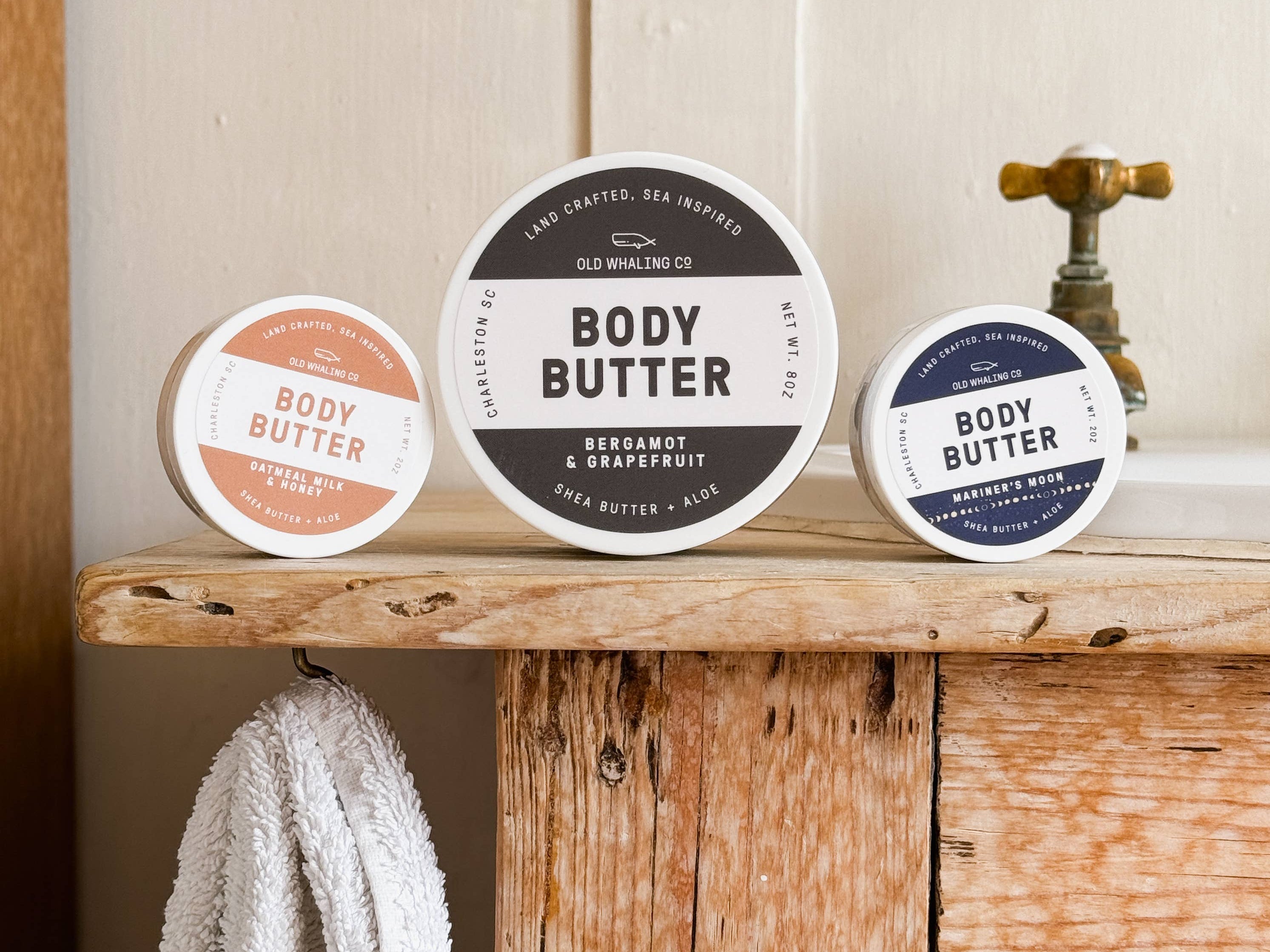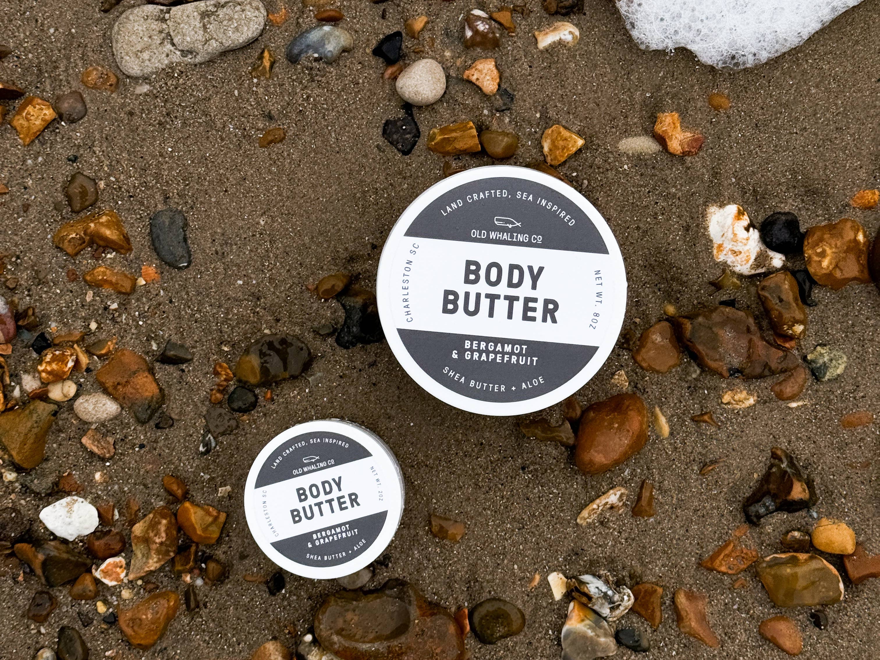 A bright, crisp, citrus blend of Italian bergamot and white grapefruit. Bergamot & Grapefruit is a popular choice for fans of fruity or citrus scents. A bolder fragrance, made with an essential oil and fragrance oil blend. Underneath the top notes of refreshing grapefruit and bergamot, this scent includes hints of cedarwood and musk, giving a slight earthy base to this bright blend. Top: Fresh Bergamot, White Grapefruit, Rhubarb, Pineapple Base: Cedarwood, Musk, Orange Blossom, Jasmine Our body butter is a perfect moisturizer for after shower, shaving, sun, or as needed! It is lightweight and soaks in quickly. Our star ingredients of shea butter, organic sunflower oil and organic aloe vera is nourishing and great for all types of skin. Our body butter is thicker than traditional lotion and extra moisturizing! This 8oz body butter jar is perfect for bathrooms and bedside tables! NO: mineral oil, parabens, sulfates, phthalates or color.