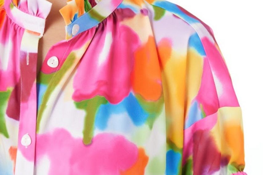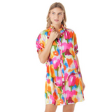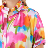 Step into the whimsical and playful world of the Betts Dress - Flower Market. Featuring a unique mandarin collar with delicate ruffles and short sleeves adorned with ruffle detail, this dress is sure to make you stand out. The button front adds a touch of elegance, while the generous fit and gentle rise at the side of the hemline provide comfort and versatility. Made with CDC Poly fabric, this dress is both lightweight and durable.