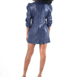 Everything you love about the Bradshaw Blazer, reimagined into a dress! A symphony of power and poise, the Bradshaw Dress features a classic notched lapel, gold button hardware, and puffed shoulders detail with 3/4 ruched sleeves. Crafted in a vegan ostrich leather, this dress is a textural masterpiece that sculpts your figure and exudes confidence. For the boss ladies that go from the office to cocktail hour, this dress was made for you!
