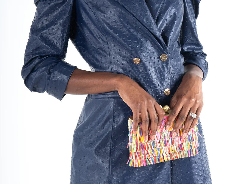 Bradshaw Dress - Navy Vegan Ostrich Leather