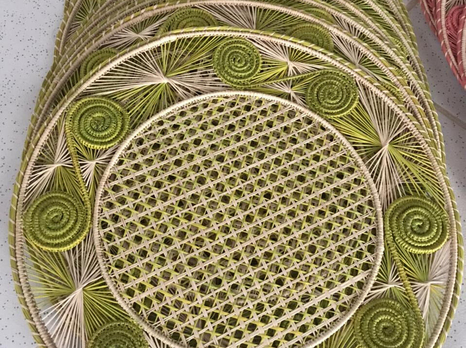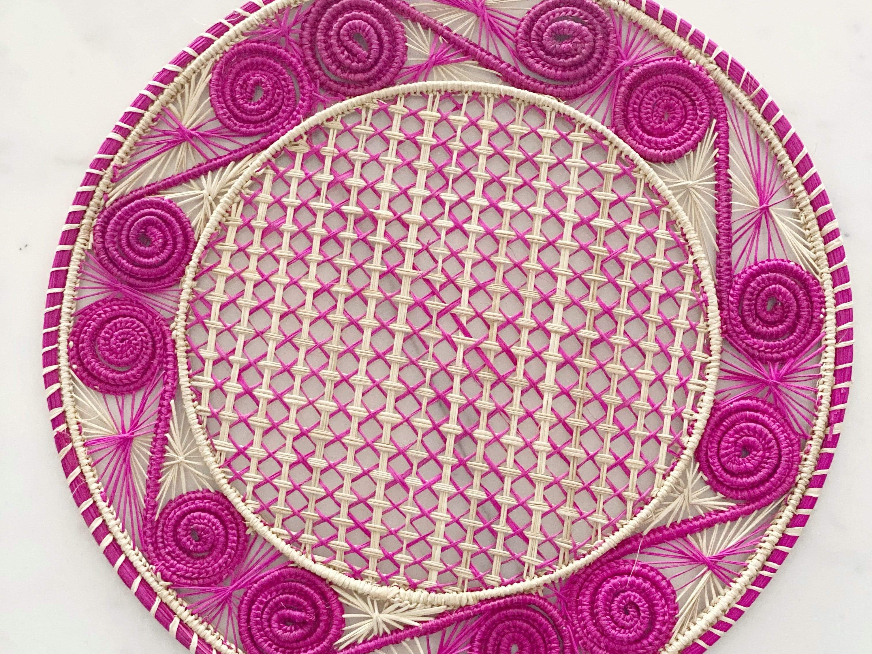 Enhance your dining decor with the Caracol Iraca Palm Woven Placemat. Custom-made for USA size tables, this 15-inch placemat combines natural elegance with intricate craftsmanship, available in customizable color options.