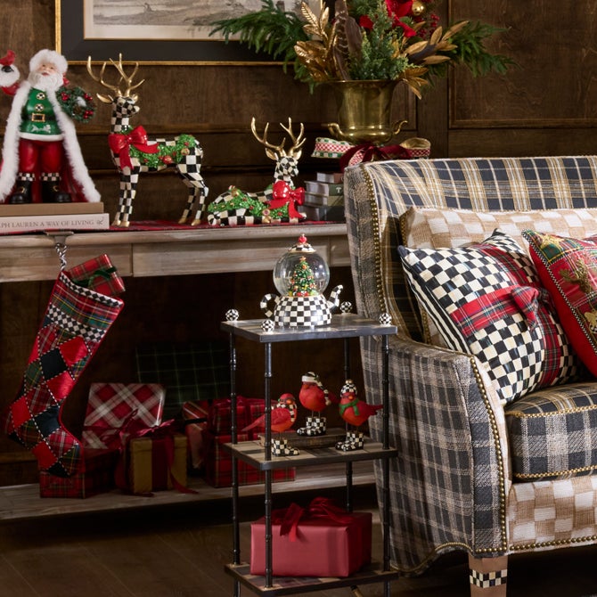 Let it snow in style with this charming snow globe featuring our iconic Courtly Check® Tea Kettle. The base and top are designed to resemble the kettle—right down to the faux cinnabar bead—while the globe showcases a festive Christmas tree and plays “Oh, Christmas Tree.”
