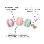 Part of our new line of interactive toys, these macarons feature hidden treat pockets as well as crinkle and squeak elements to stimulate all five senses.