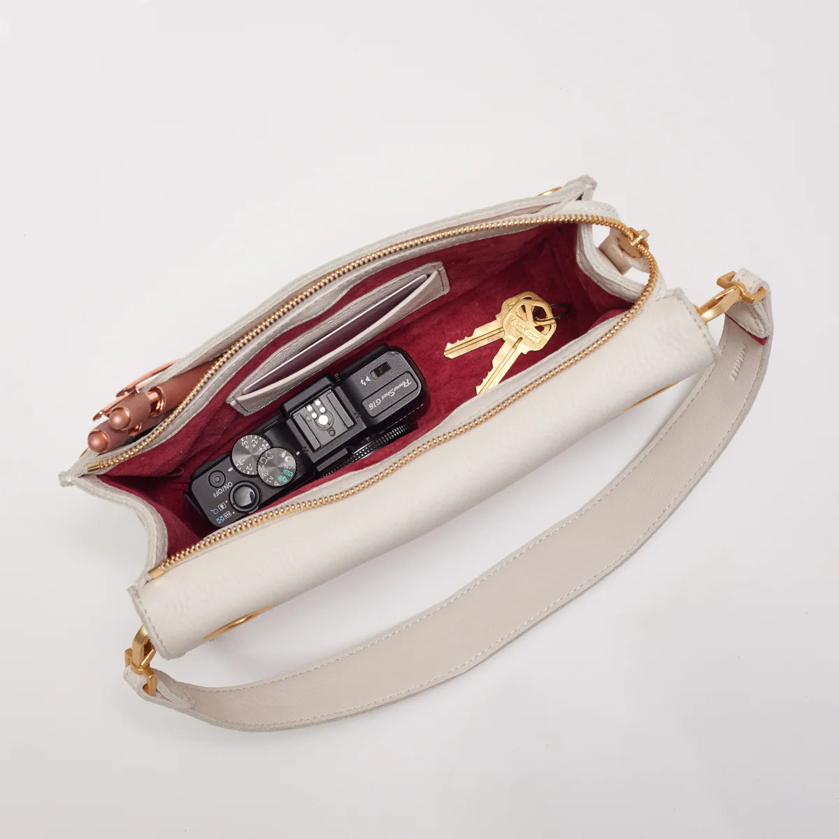 Meet the reimagined Montana Clutch by Hammitt, a true icon with bold details that celebrate its heritage. Crafted in classic pebbled leather with a warm white hue, this clutch is as functional as it is timeless. With three roomy compartments, a detachable vintage-style strap, and thoughtful accents like rivets and grommets, the Montana Clutch is designed to become your new everyday favorite.
