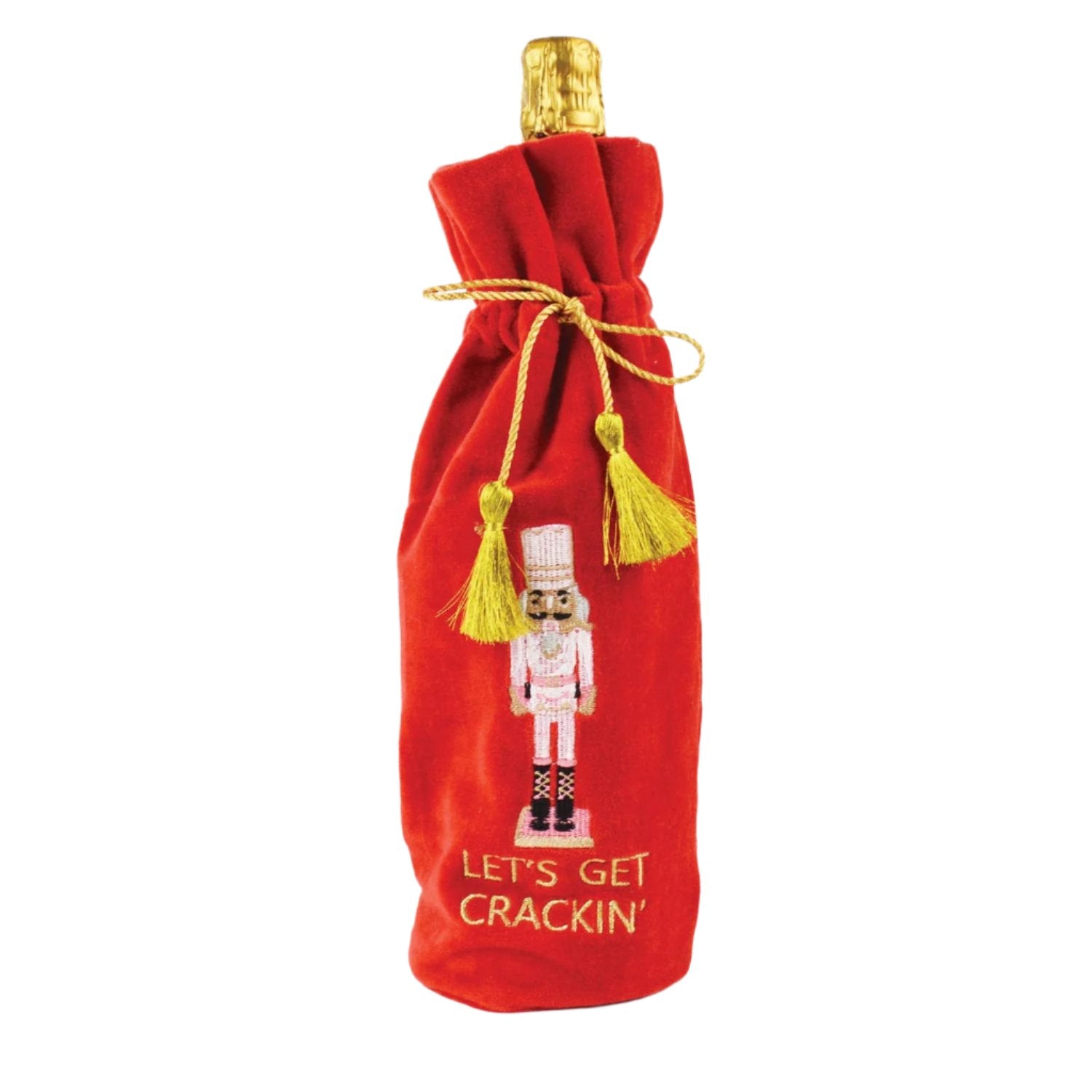 Host a festive celebration with our Nutcracker Embroidered Wine Bag! This elegant bag, crafted with velvet embroidery and a stylish tassel-tie drawstring, adds a luxurious touch to any gift. Perfect for holding a 750ml bottle of champagne, wine, or your favorite spirit, it’s sure to bring holiday charm and style to your gathering. Pair it with our disco-themed items for a complete, groove-worthy gift package! The Nutcracker Embroidered Wine Bag brings glitz and joy to every special occasion. Size: 13" x 6.25". Holds a 750ml Bottle. Designed in the USA; Imported.