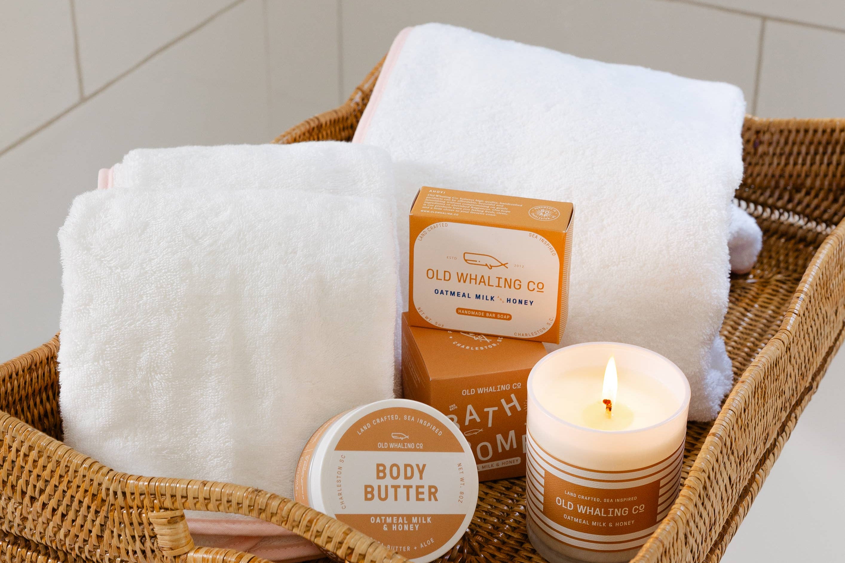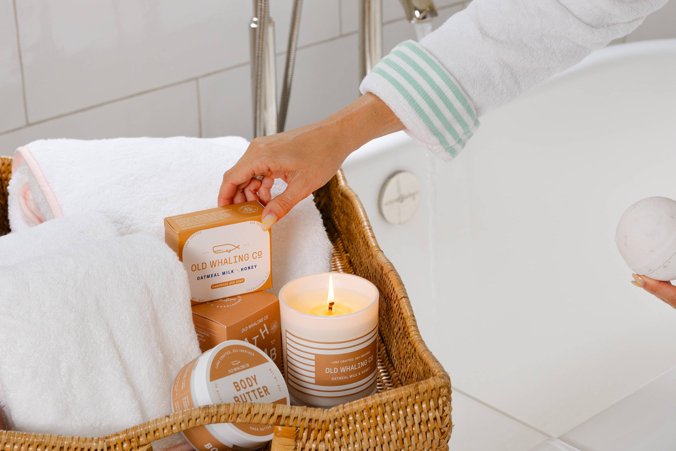 Oatmeal Milk & Honey is a comforting and nostalgic fragrance that combines warm oatmeal lightly sweetened with Manuka honey, almond milk, and a touch of spicy clove and vanilla. Reminiscent of a freshly baked almond cookie, this soothing scent is slightly sweet with gentle hints of spice. A wonderful gift.