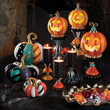Take your pick from our most unusual pumpkin patch with the Mini Patchwork Spice Pumpkin. This charming gourd features a medley of solids and patterns in orange, sage, ivory, and black, all topped with a twisted golden stem for a touch of glitz. A gorgeous seasonal staple from early fall through Thanksgiving.