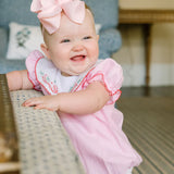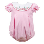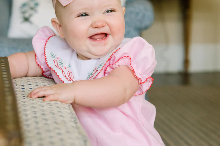 Classic and so lovely, this style was designed to take you from holiday to any day all throughout the year. It's a true stand-out with hand-embroidered stitching using one of our favorite color combinations: red, pink and green. Wear this for parties and pictures or other special occasions! Sister dress also available.
