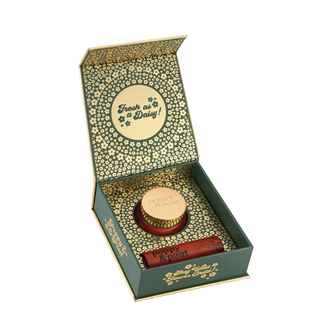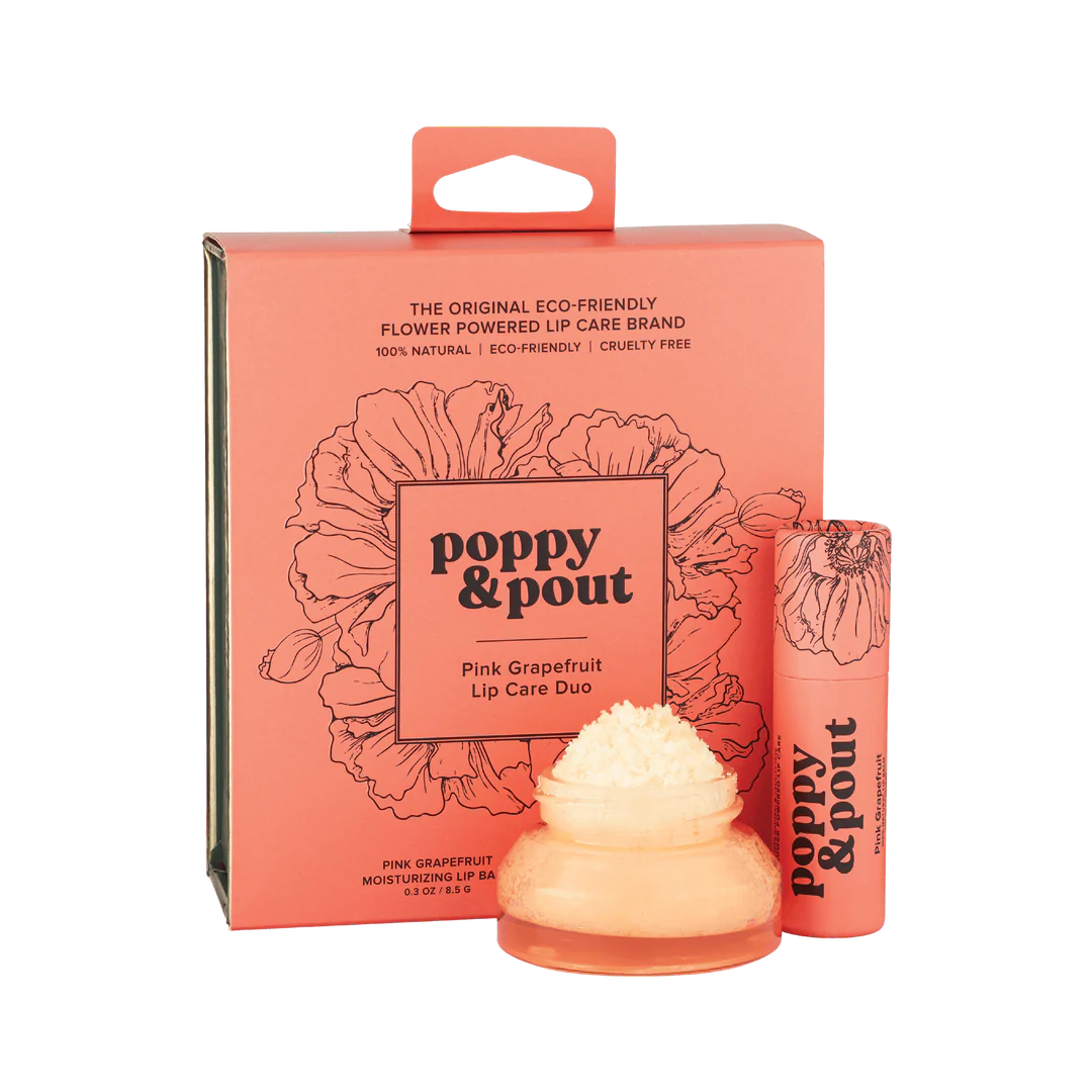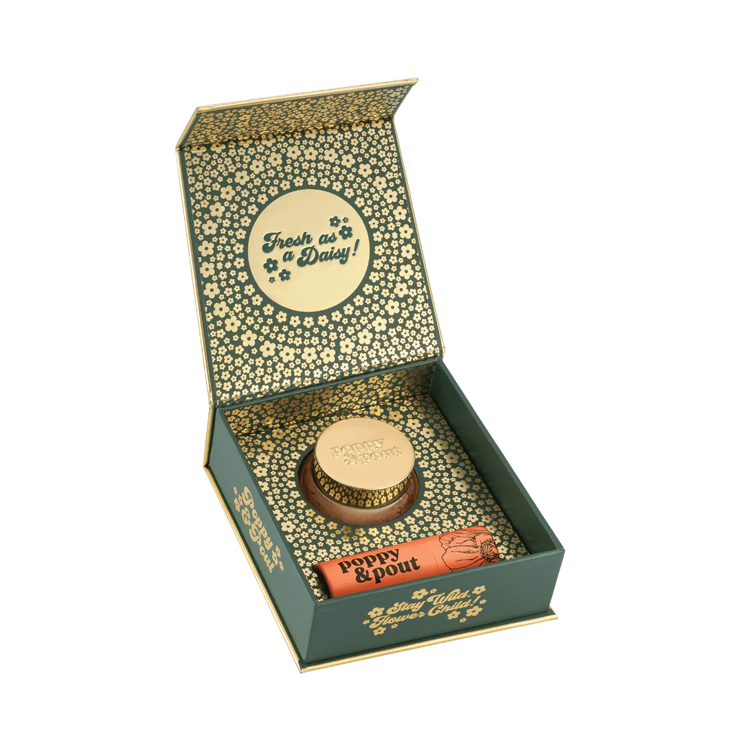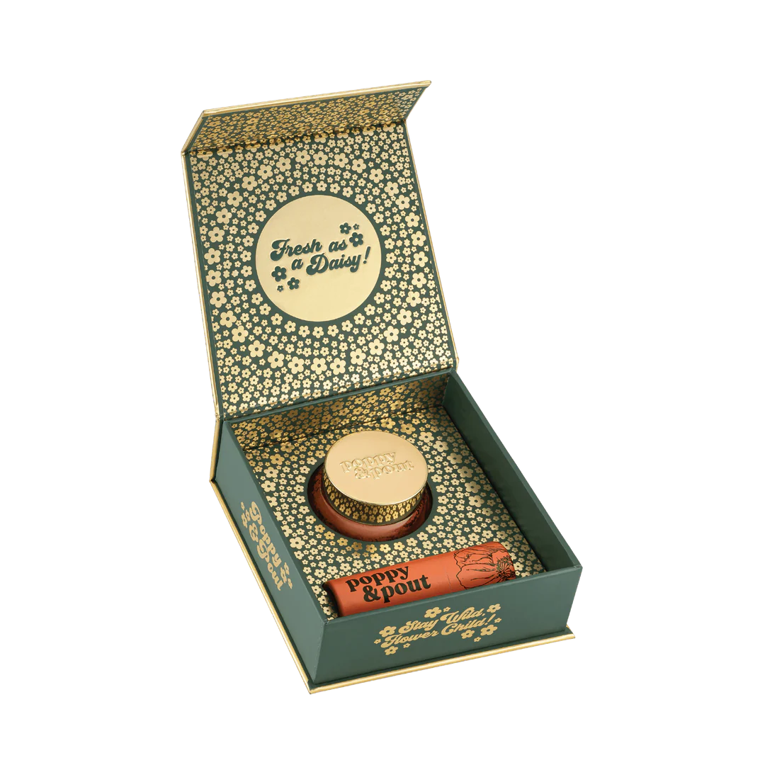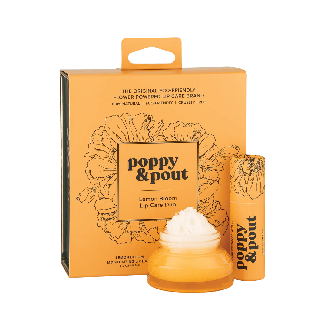 Step up your lip care routine with this Lip Care Duo! This gift set includes one matching lip balm and lip scrub in a signature green and gold, recyclable gift box. These are made with 100% natural ingredients and will leave your pout feeling fresh. Flower powered gifting that's easy and sustainable! Available in all 10 signature flavors.