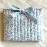 Carry your Bible in timeless style with this beautifully quilted floral bag. Featuring soft blue blooms on a cream background and finished with a charming oversized bow, it’s as elegant as it is functional. The padded design offers gentle protection, while the compact size (12.6" x 11" x 0.8") makes it perfect for carrying your Bible, journal, or small notebook. Whether for Sunday service or quiet moments of study, this bag adds a touch of grace to your faith-filled routine.