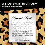 Each doll includes the signature Dammit Doll poem, reminding you it’s okay to throw something (soft) when things go sideways. Smack it on your desk, squeeze it while muttering your last nerve’s eulogy, or toss it dramatically across the room. Because when life gets wild, you might as well have something stylish to throw.