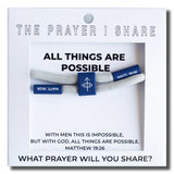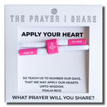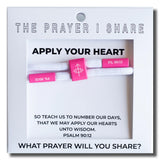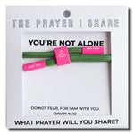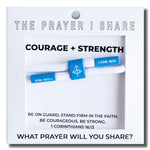 The Prayer I Share Bracelets are designed to be a symbol of strength, resilience, and faith. Each bracelet has a bible verse meant to be chosen by you. But these bracelets are not meant to be kept to oneself. Instead, they are meant to be shared with others in moments when encouragement is needed the most. We believe that by supporting one another, we make each other stronger.