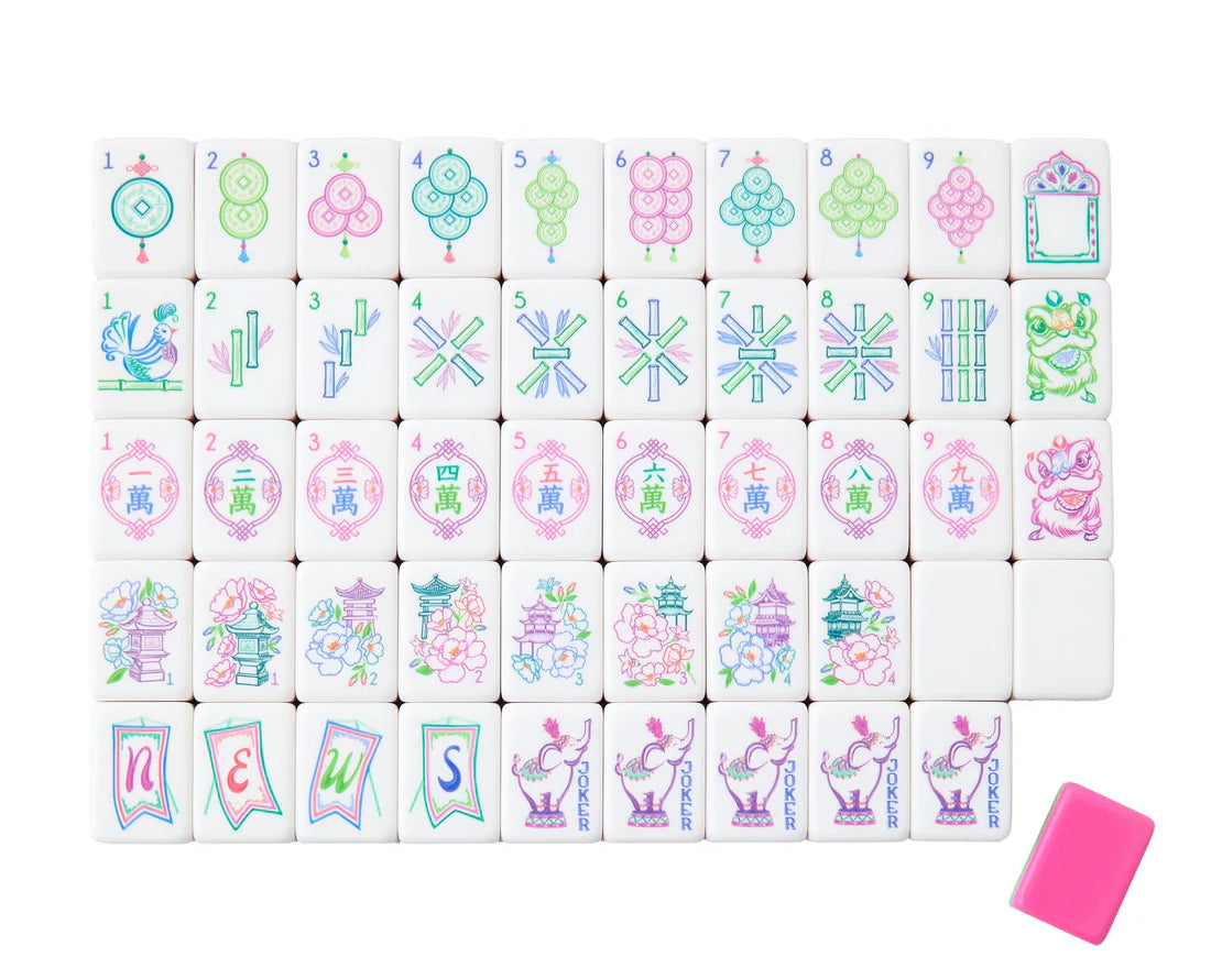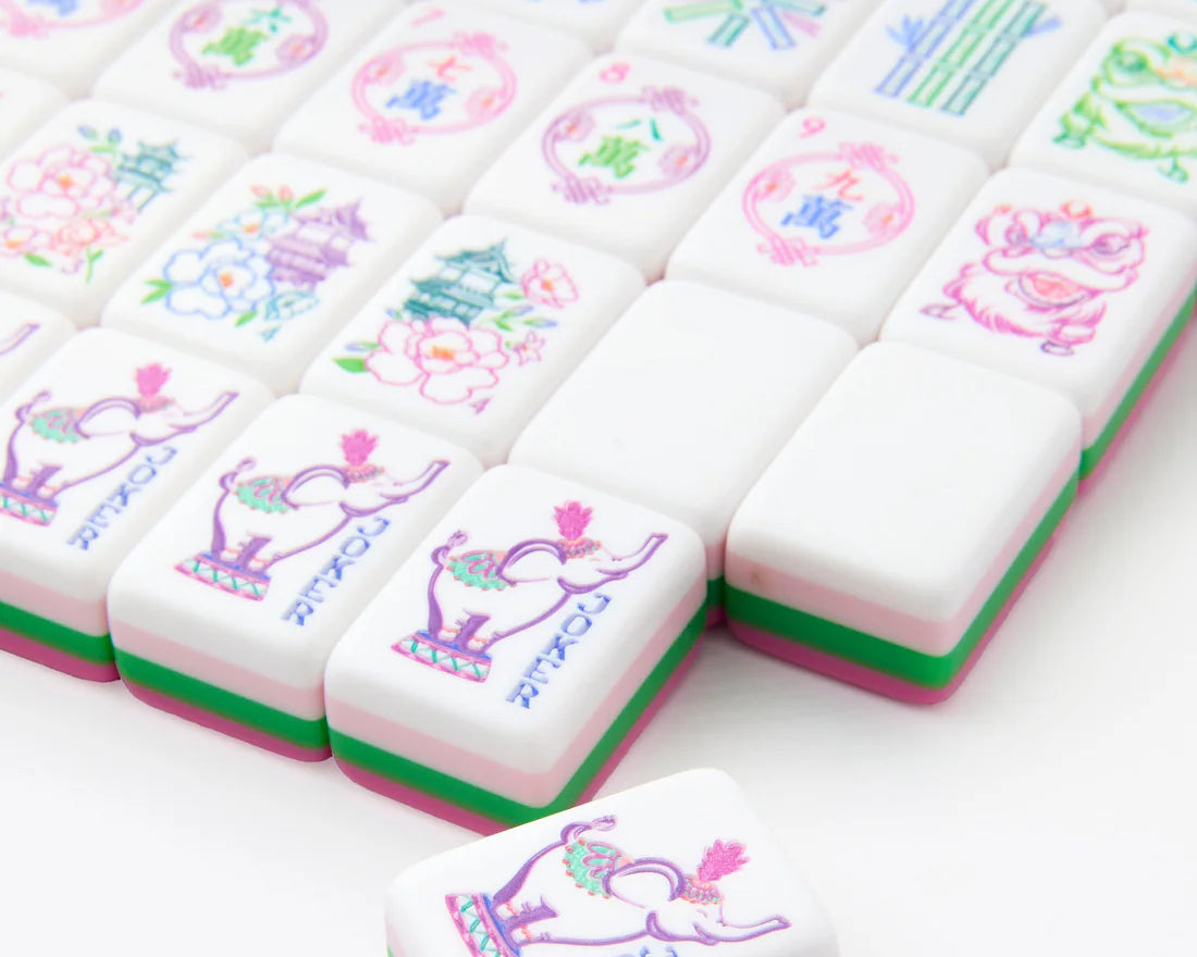 Radiant, playful, and full of personality, the Amara Tiles are designed to brighten every Mahjong table. A lively mix of pinks paired with a vibrant pop of green creates a palette that feels fresh, bold, and beautifully balanced. Energetic yet elegant, Amara brings instant joy and standout style to every round.