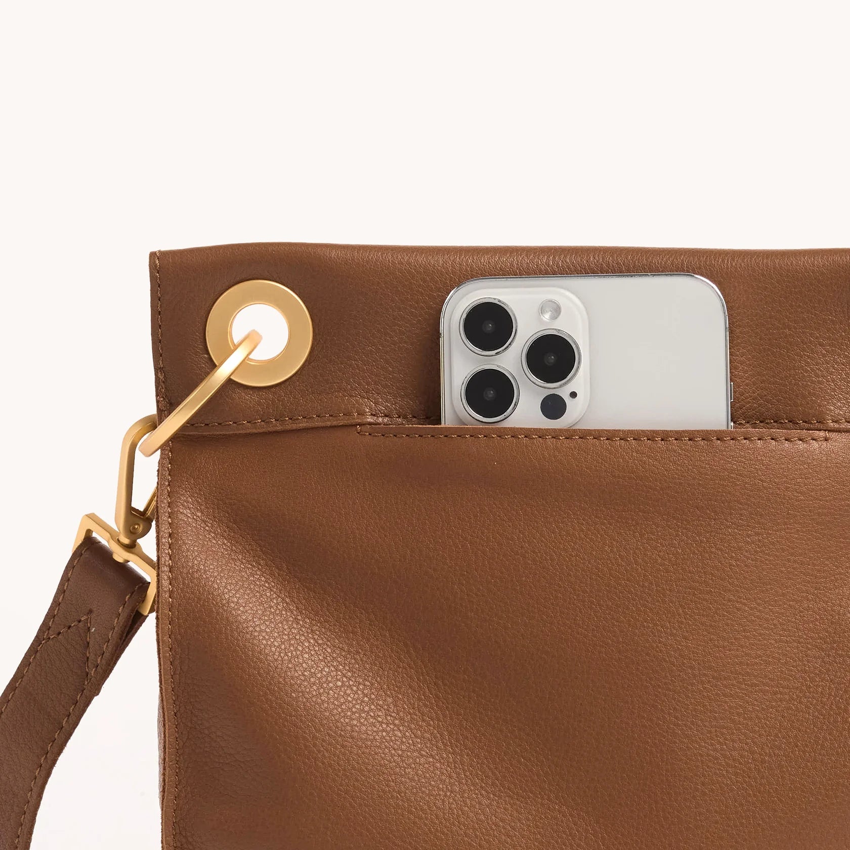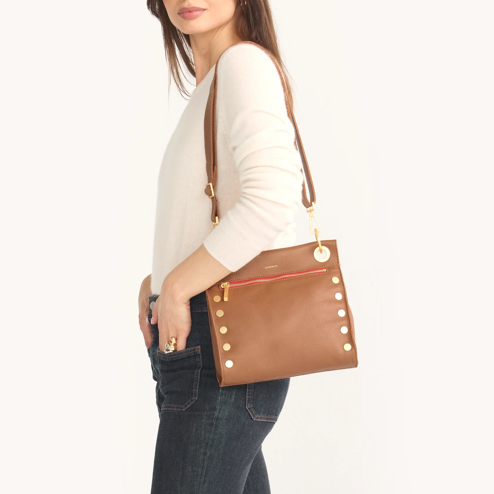 You asked, and we delivered! Introducing the Tony Medium by Hammitt, a larger version of their iconic “it” bag. With the same beloved shape and adjustable strap as the original Tony crossbody, this design offers all the extra space you’ve been dreaming of. Crafted from soft pebbled leather with a subtle shine, the Tony Medium showcases a warm medium brown hue enriched by a delicate yellow undertone, adding depth and sophistication to any outfit.