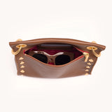 - Made with soft, pebbled leather featuring a warm medium brown finish and a hint of shine