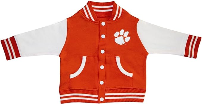 Your little varsity player will be showing the best team spirit ever in this super detailed and classic jacket. Sporty with high quality striped ribbed detailing and strong front flat snaps. Jacket front is enhanced with your favorite authentic team logo.